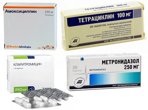 Антибиотикотерапия при хеликобактериозе подразумевает применение следующих препаратов: