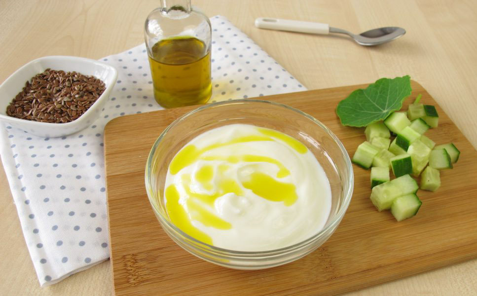 - Перемолотые семена льна с мёдом, кефир, льняное масло.