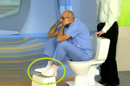 Для облегчения акта дефекации высоко поднимите колени, подставив под стопы подставку