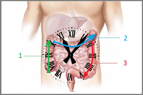 Направление массирующих движений толстой кишки при проблемах с дефекацией