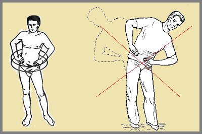 - Исходное положение – любое: лёжа, лежа с согнутыми ногами, сидя, стоя, стоя в полу-наклоне, с упором ладонями в середину бёдер чуть согнутых в коленях ног.
