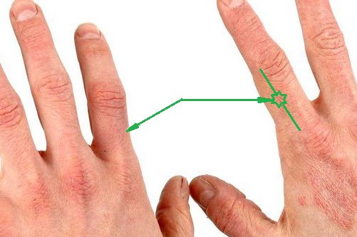 - Надавливать на точку можно подушечкой любого пальца другой руки.