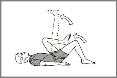 Из положения, как на фото, обратите внимание, что ладони подложены под ягодицы, подтяните колени ближе к груди, а затем верните в исходное положение. Затем, по очереди, тяните колено к одному и другому плечу. Тучным людям это упражнение в динамике не подходит. Им следует подтянуть колени как можно ближе к себе и зафиксировать это положение на несколько секунд. Помогать руками нельзя. |