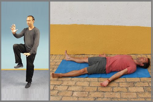 Золотой петух, стоящий на одной ноге и Шавасана