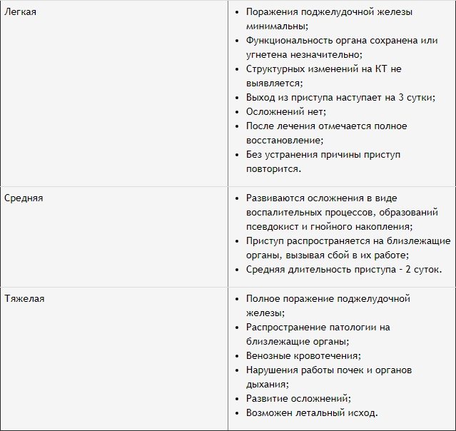В зависимости от силы проявления симптоматики выделяют 3 степени тяжести острой формы приступа.