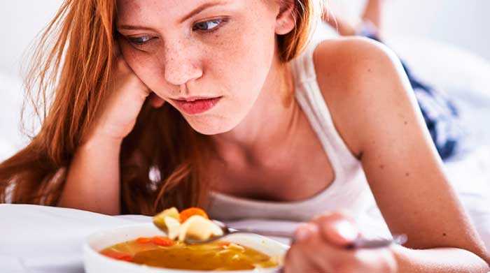 В попытках похудеть многие женщины изнуряют себя жесткими и низкокалорийными диетами. Иногда после еды появляется головокружение и головная боль, возможно присутствие тошноты и слабости. Причиной слабости является нехватка витаминов и микроэлементов для поддержания организма в нормальном состоянии.