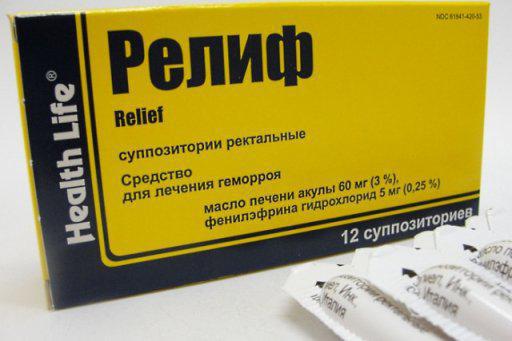 «Релиф» – еще один препарат, содержащий натуральное действующее вещество – экстракт из печени акулы. Эти свечи действуют мягко и быстро, устраняют воспаление, кровотечение, снимают боль, зуд. Их используют также для ускорения заживления мелких ранок толстой кишки и анального прохода.