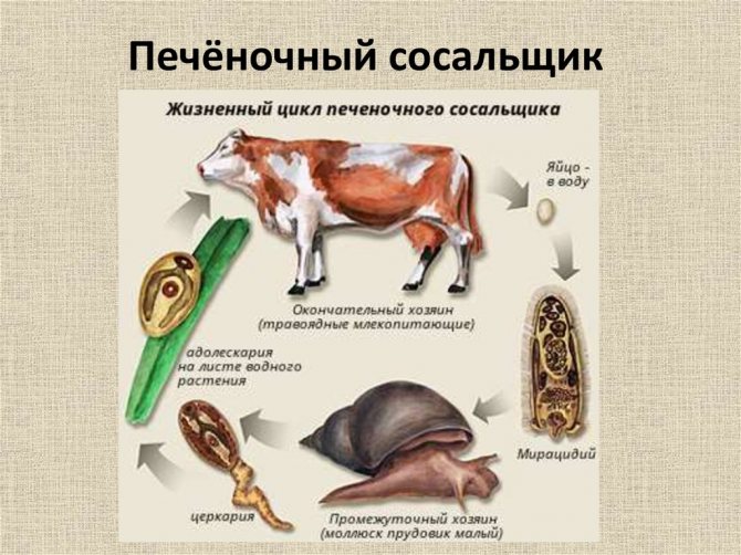 Проходя ряд преобразований, они превращаются в личинки, покрытые плотной оболочкой, которые прикрепляются к стеблям водных растений. Эти личинки являются заразными для человека и травоядных животных.