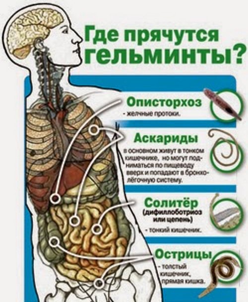 Несмотря на то что большинство гельминтов селится в кишечнике, некоторые виды обнаруживаются в печени, легких и даже мышцах. Чтобы знать, как вывести паразитов, нужно определить, с каким видом пришлось столкнуться и где именно они поселились. Наиболее часто встречаются следующие гельминты: